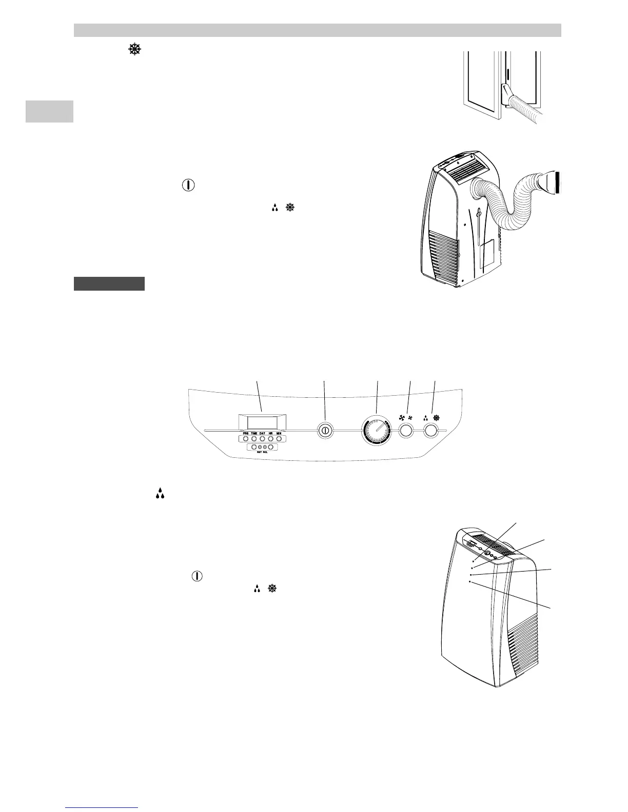 Die Ein / Aus Schalter (A) drücken, um das Klimagerät in Betrieb zu setzen.