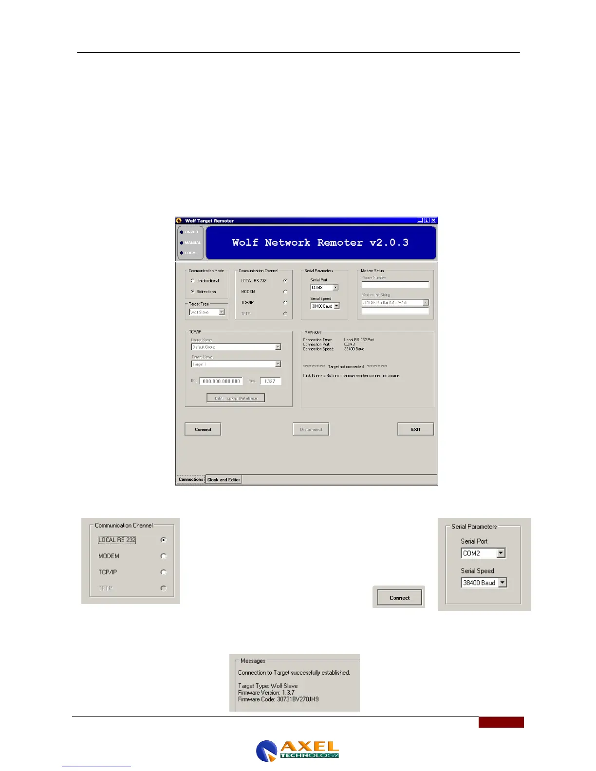 If the connection is successful, the Messages panel will show the message “Connection to target successfully