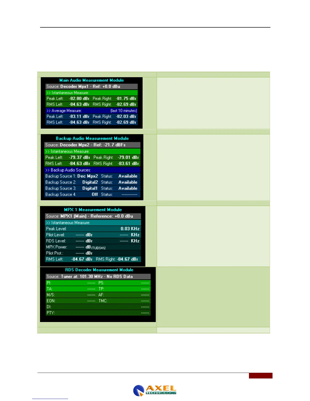 The Backup Audio Measurement Module window