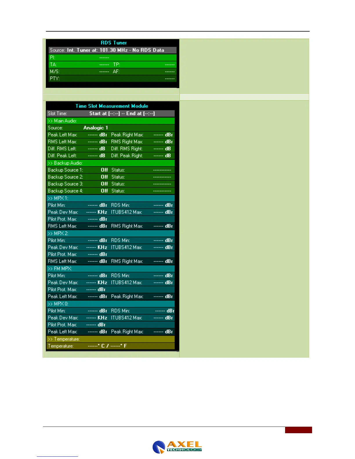 In this panel, you can see the last slot of measurements