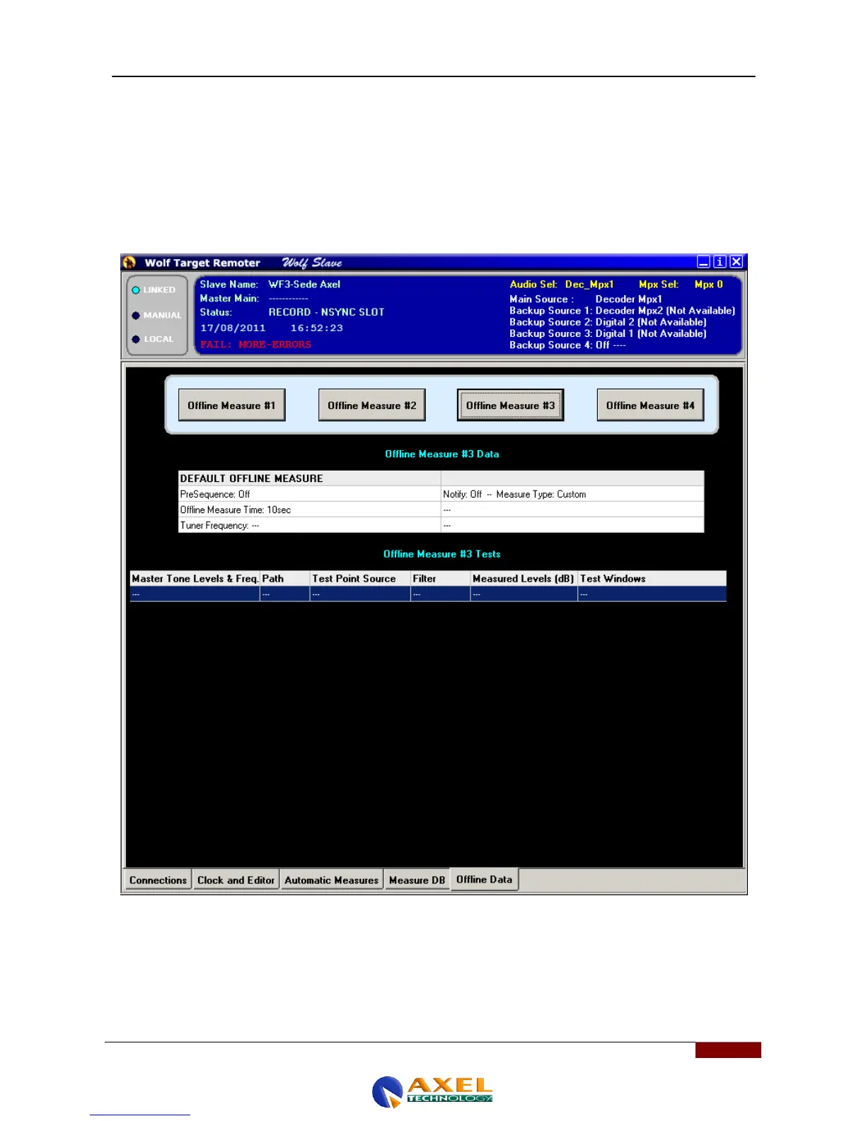 This part of the software only works with the Wolf Master, as it performs comparative tests, i.e. since the quality of
