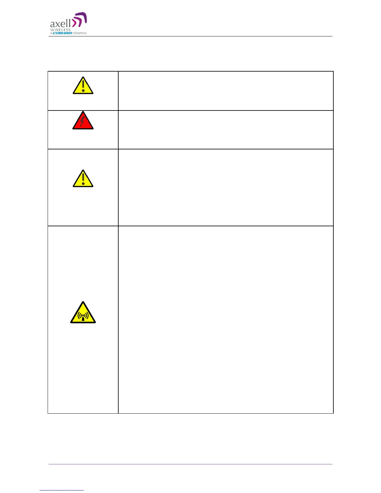 © Axell Wireless Ltd Doc. No. PN 3302 61-200001 Series-UM Rev. 1.0 9