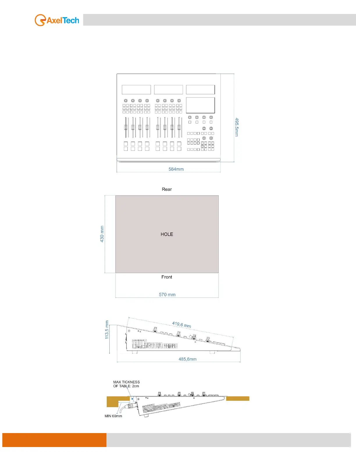 AxelTech OXYGEN 3000 PLUS - GENERAL DESCRIPTION; DIMENSIONS (8 PHYSICAL FADERS)