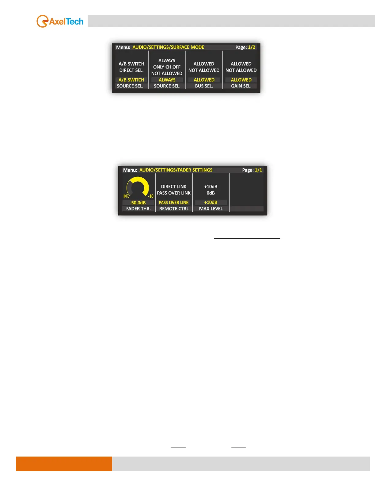 The setting of this threshold parameter allows you to establish the minimum threshold of each fader, so