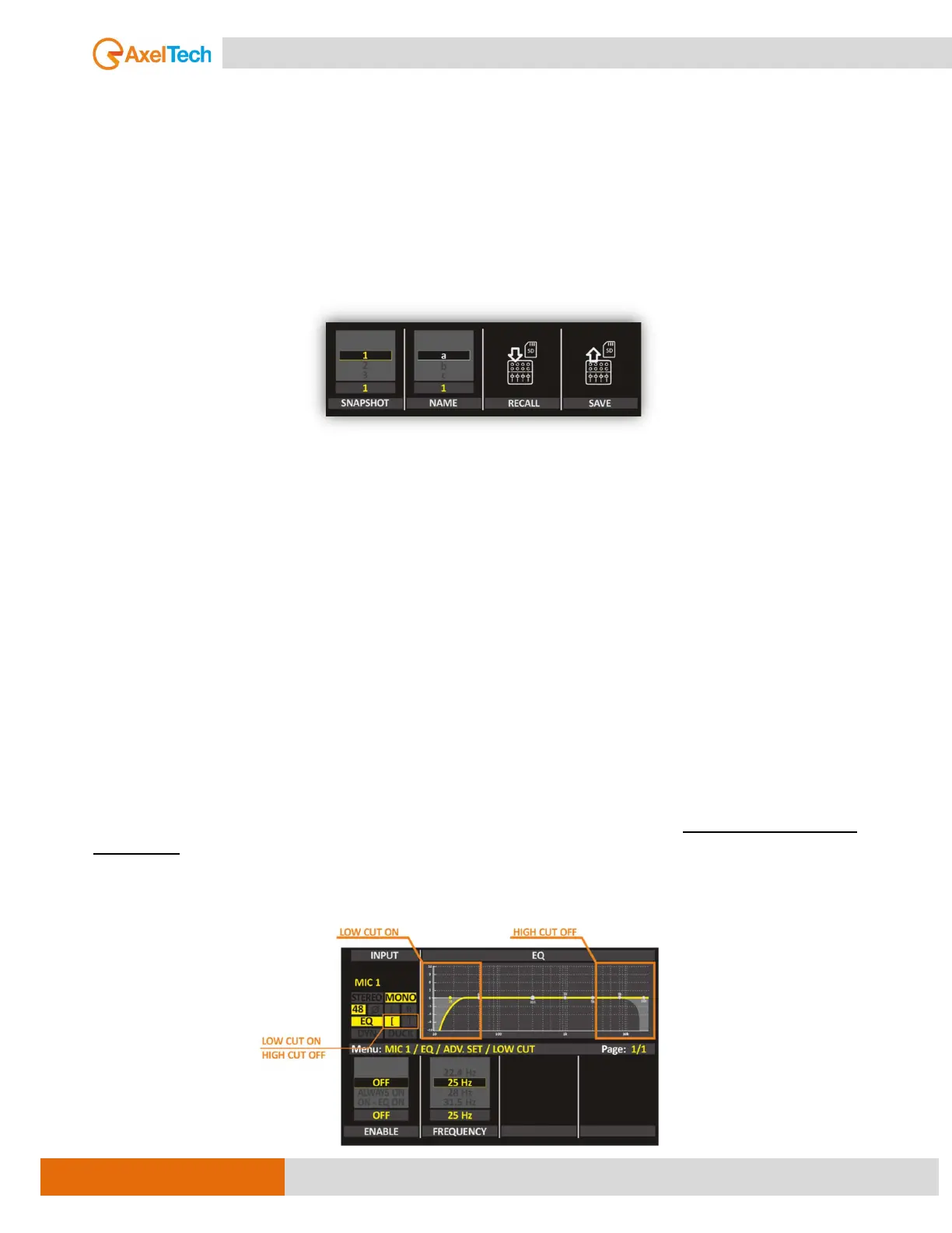 SNAPSHOT: it’s able to save ten different EQ PRESET by selecting the position of the new save from 1 to 10