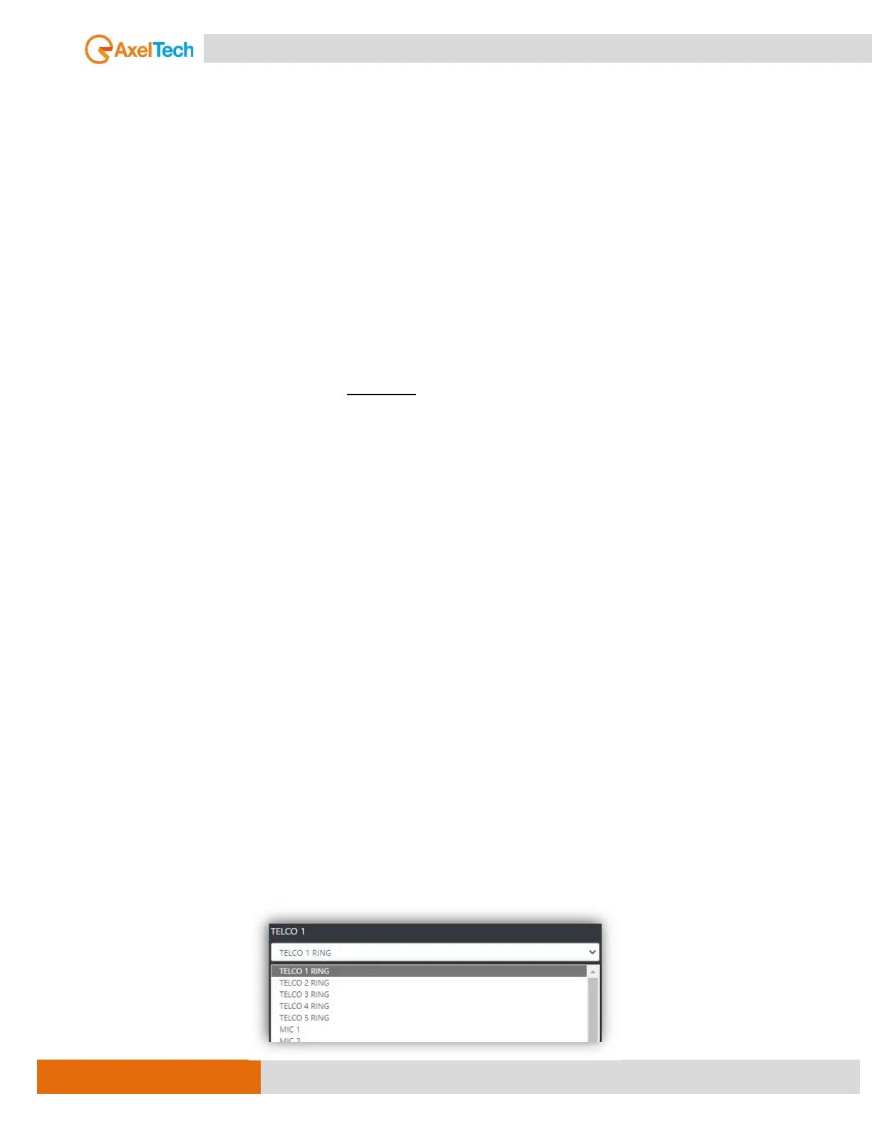 To manage TELCO 1 GPI signal set the TELCO 1 RING by the following submenu: