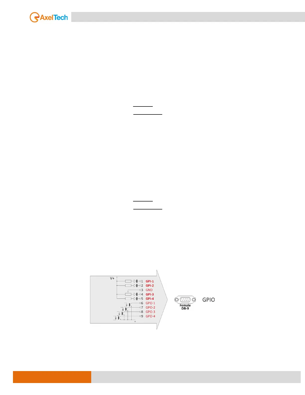 The SUB-D9 pin-out is described in the GPIO PINOUT scheme, resumed by the picture below: