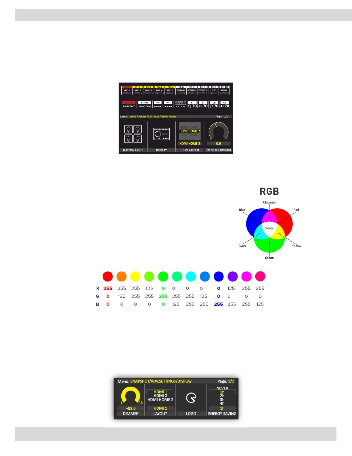 in this section can set the light intensity of buttons. Also, it can set a different color for MUTE, PFL, and