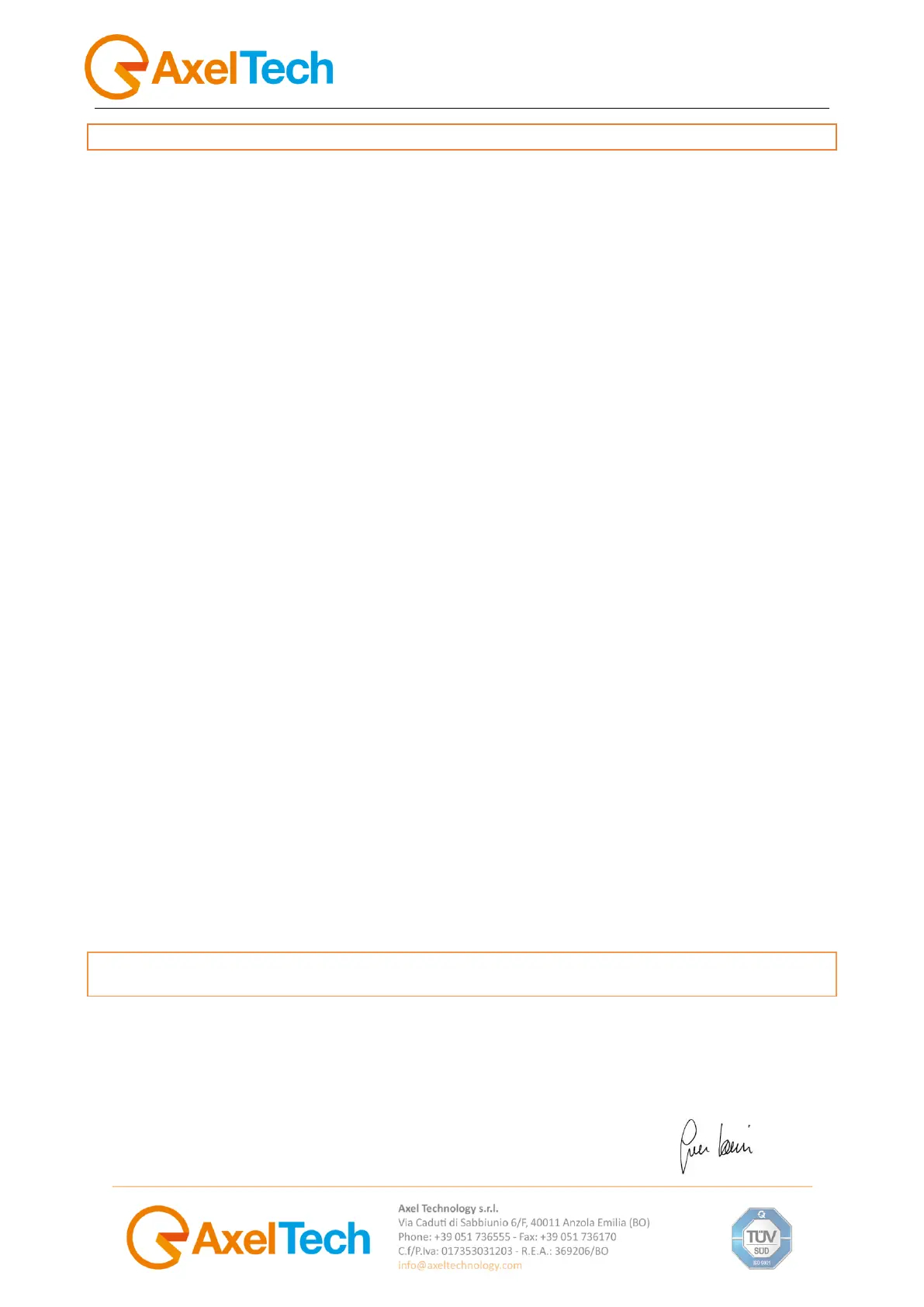 Nome Fabbricante: AXEL TECHNOLOGY S.r.l.
