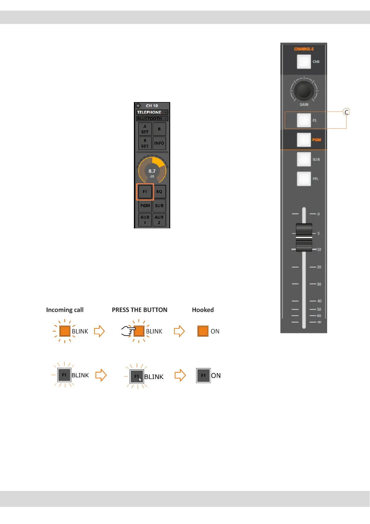 In the presence of an incoming call, the F1 button starts blinking,