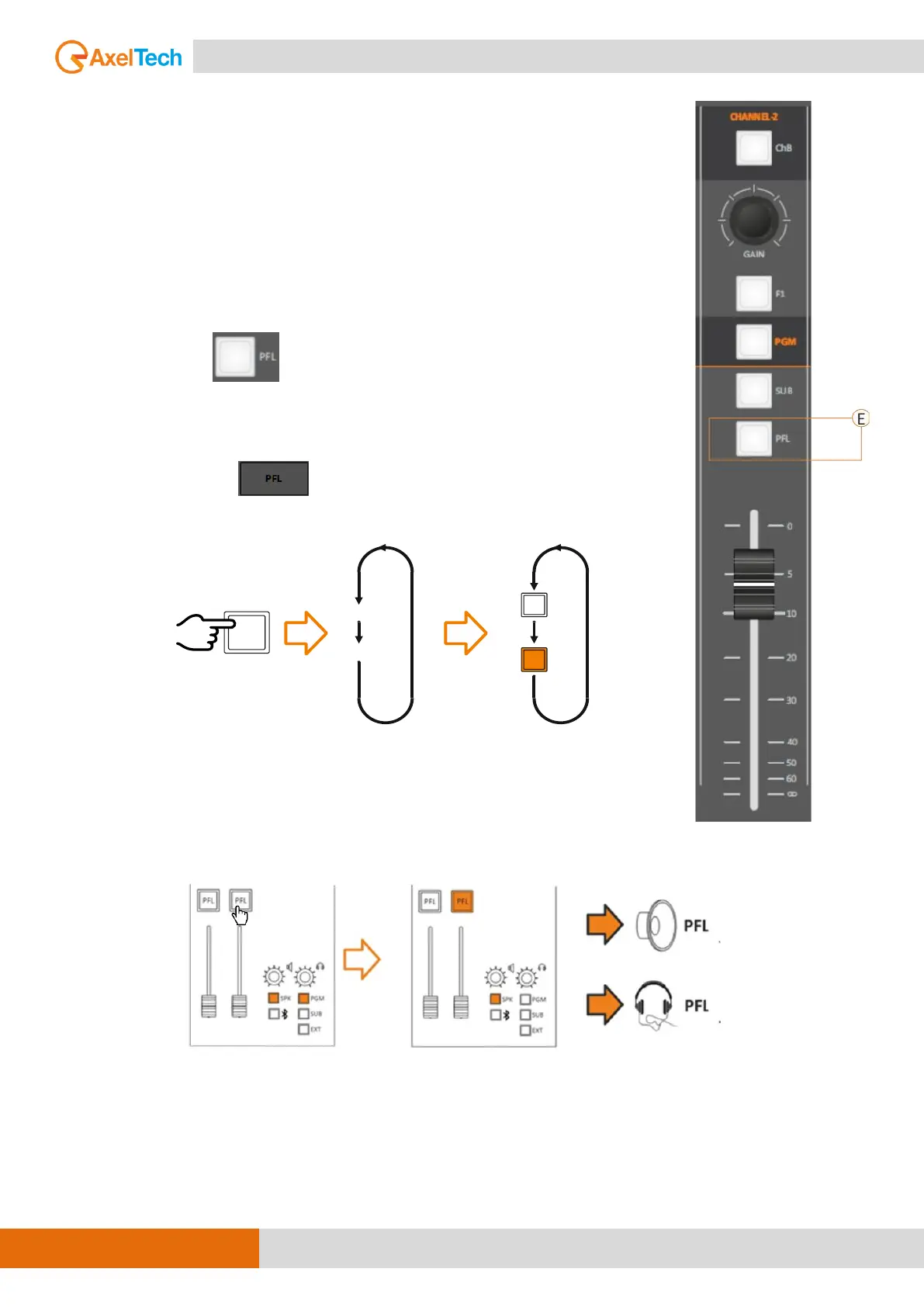 When the PFL LED is ON, the pre-listening is enabled on that channel.