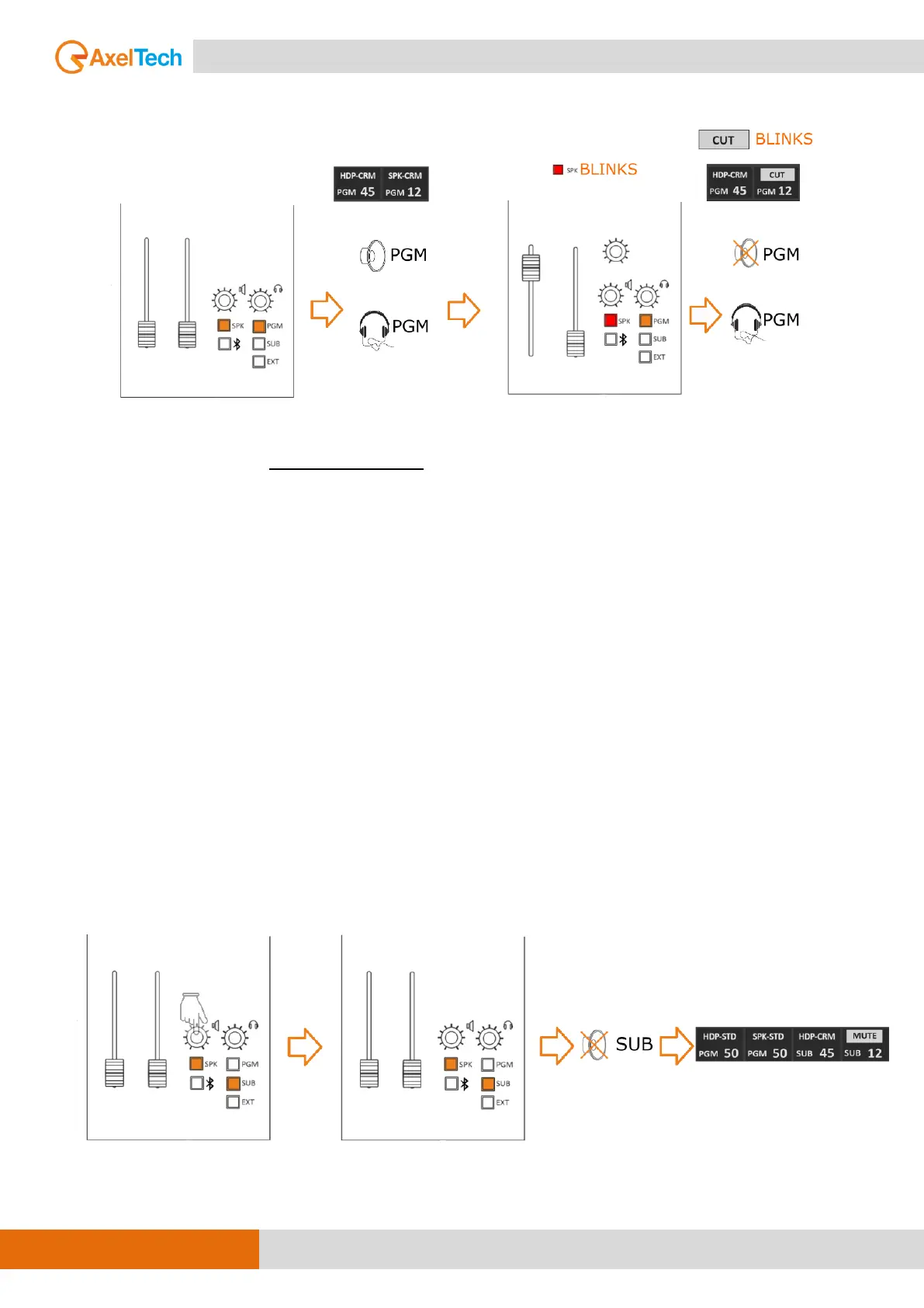 The CUT mode is triggered by the change from OFF to ON of a microphone source to which it has