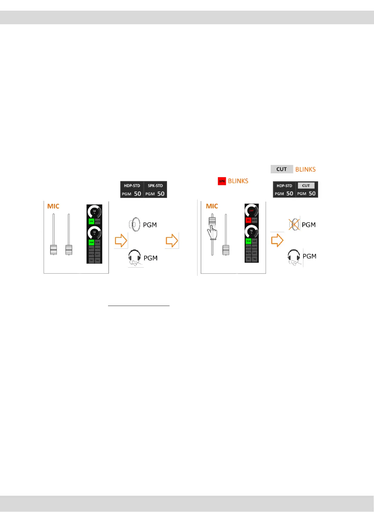 CUT MODE: it’s allowed the microphone to CUT OFF the audio of control room loudspeakers once the