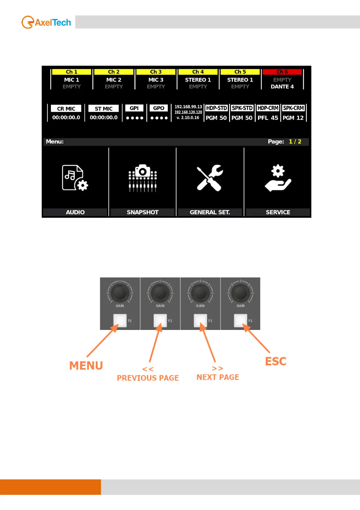 specified GAIN KNOBS and the related F1 BUTTONS as described by the following 2 pictures: