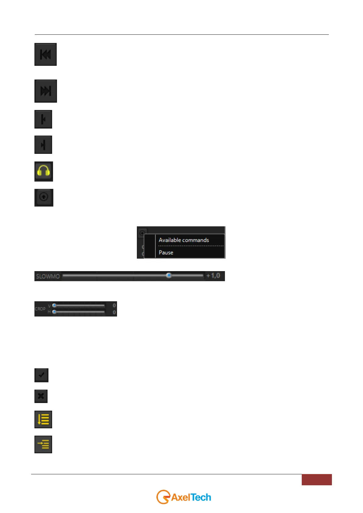 Back to the previous clip/restart clip. NB: If you click this button before 3 seconds from the start, it comes back