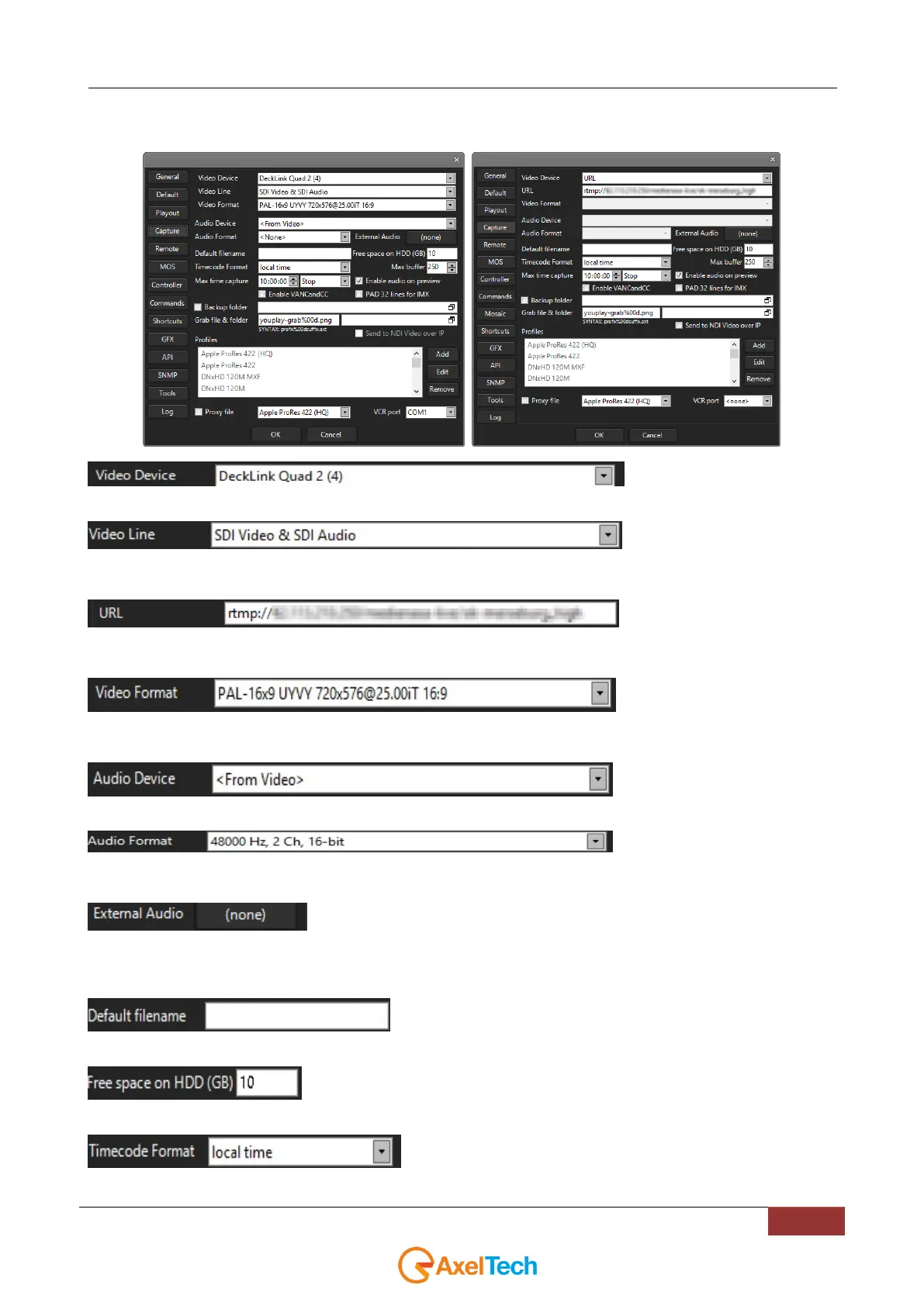 shows the list of all available streams) By choosing the URL Video Device the parameter is not present