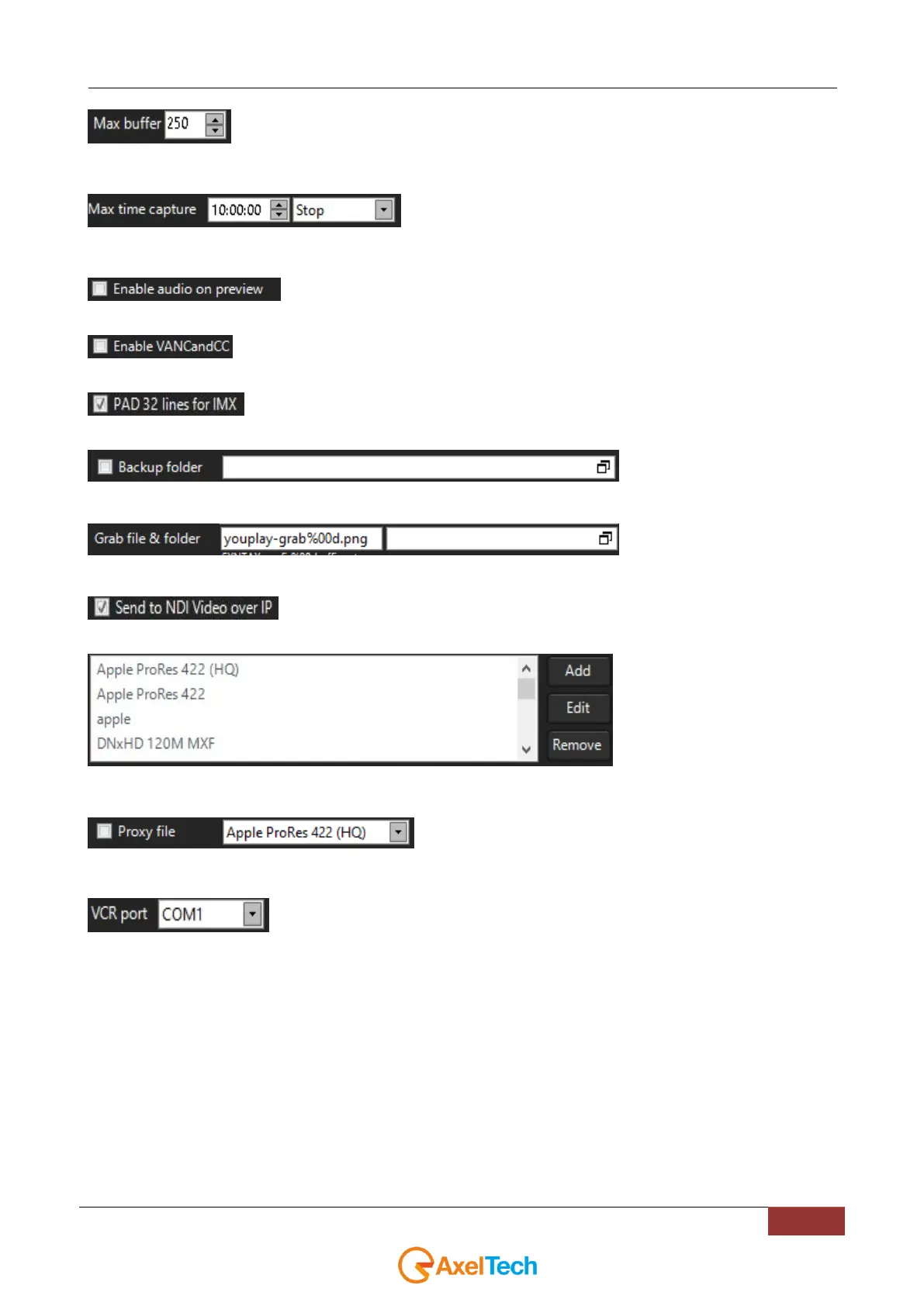 Applies on the captured video a 32 lines PAD ( a little panel of 32 pixel high on the top of the video)