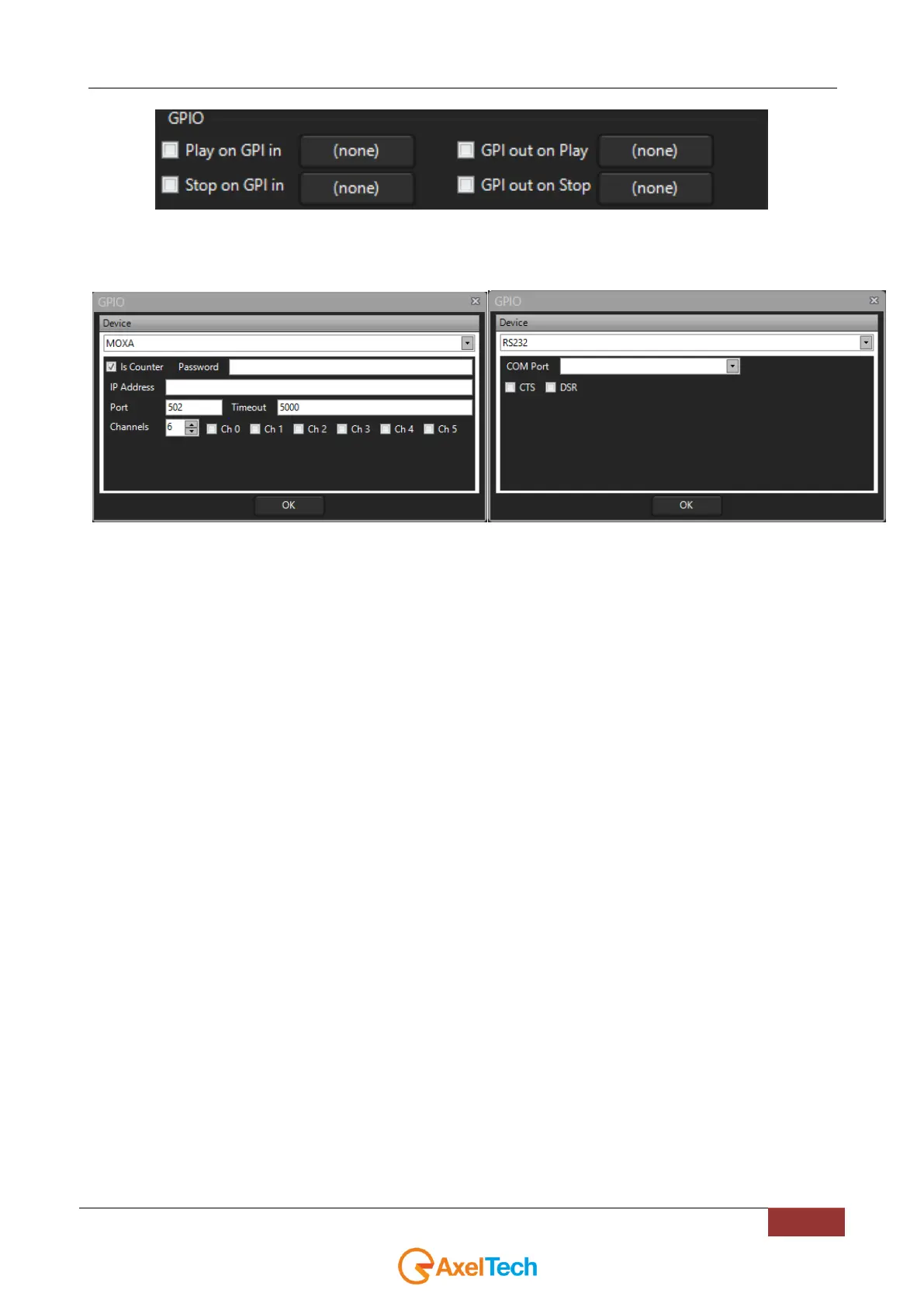 GPO commands from playout to external device (e.g. relay contact) and from external device to playout (e.g. tally from
