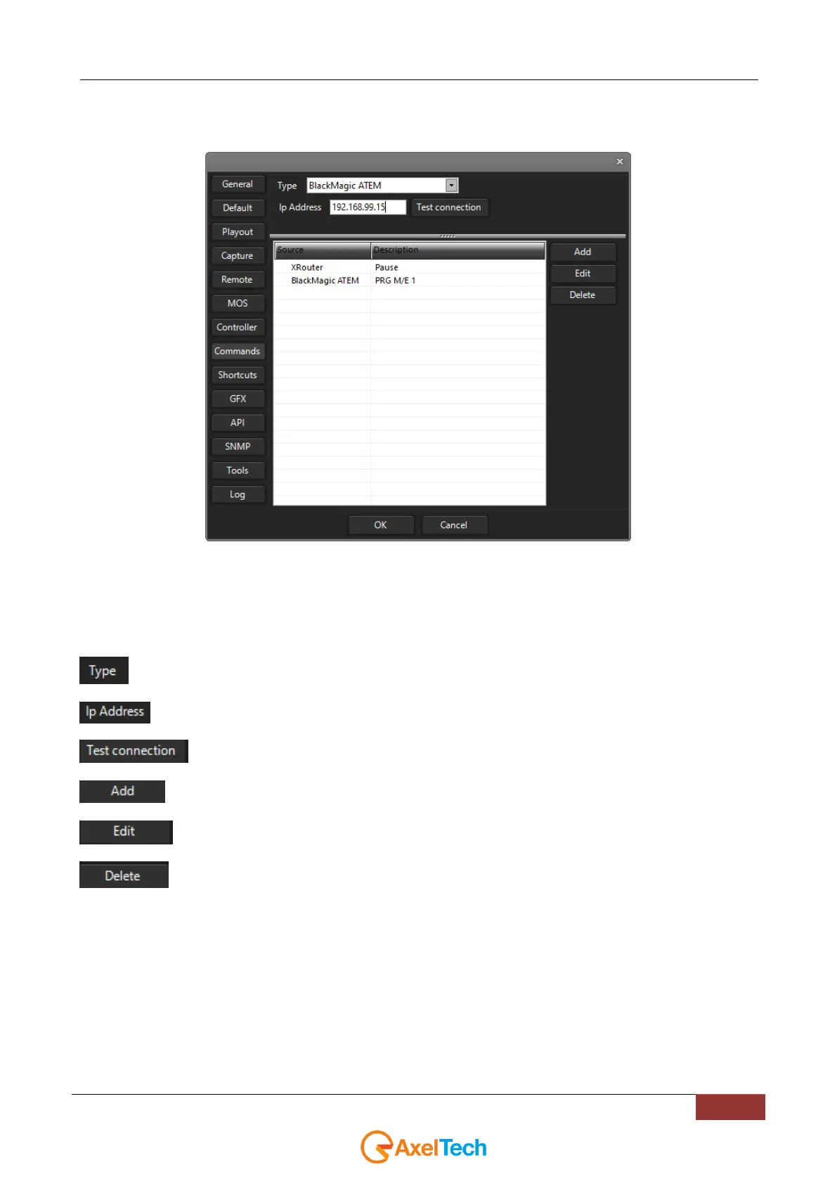In COMMANDS section you can add or edit multiple commands to send to multiple external devices.