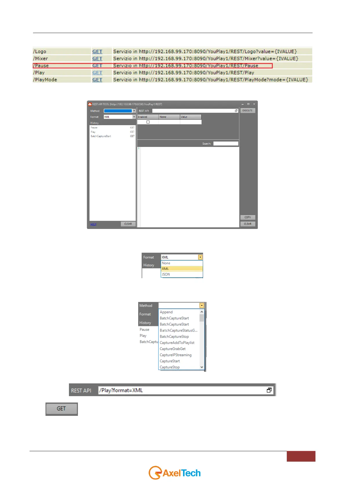 From METHOD drop down menu it is possible to select the desired REST API command to send to your YOUPLAY