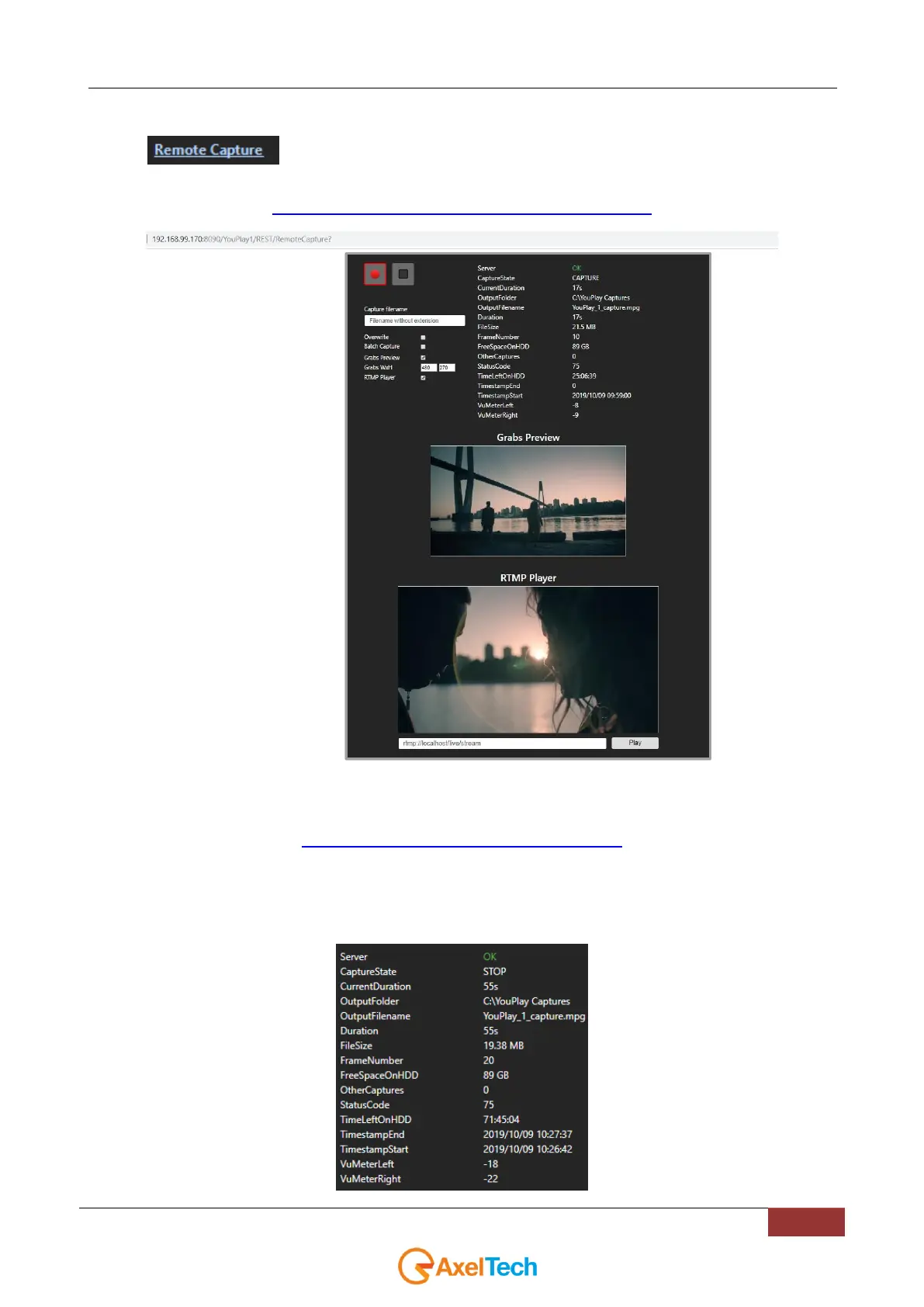 From the link you will be able to remotely monitor the YOUPLAY capture on a webpage.
