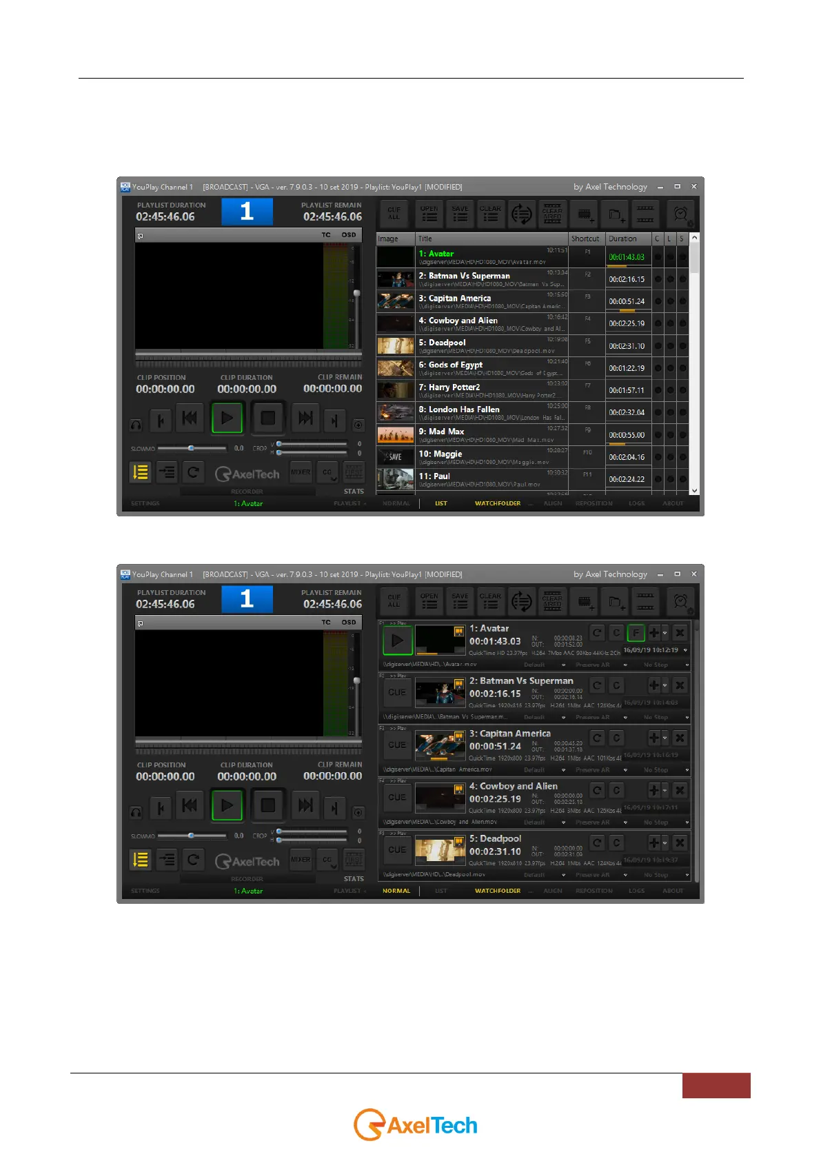 It is possible to choose between two different playlist displays: NORMAL and LIST.