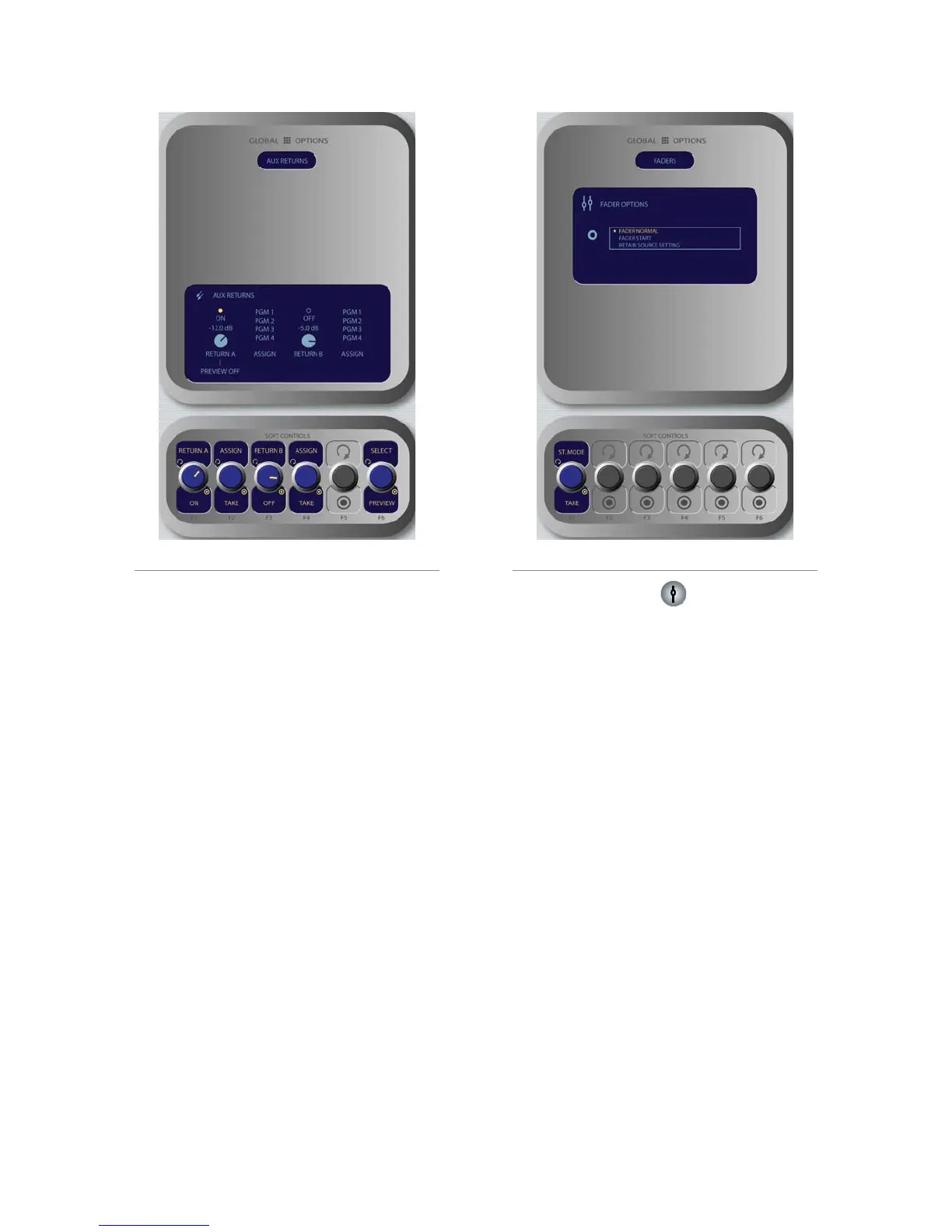 Figure 4-18: Fader Options menu screen.Figure 4-17: Aux Returns menu screen.