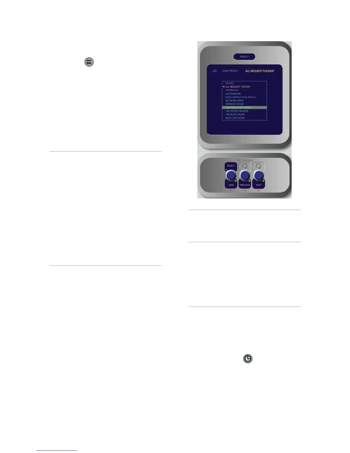 the on-screen list of available Show Profiles. Push