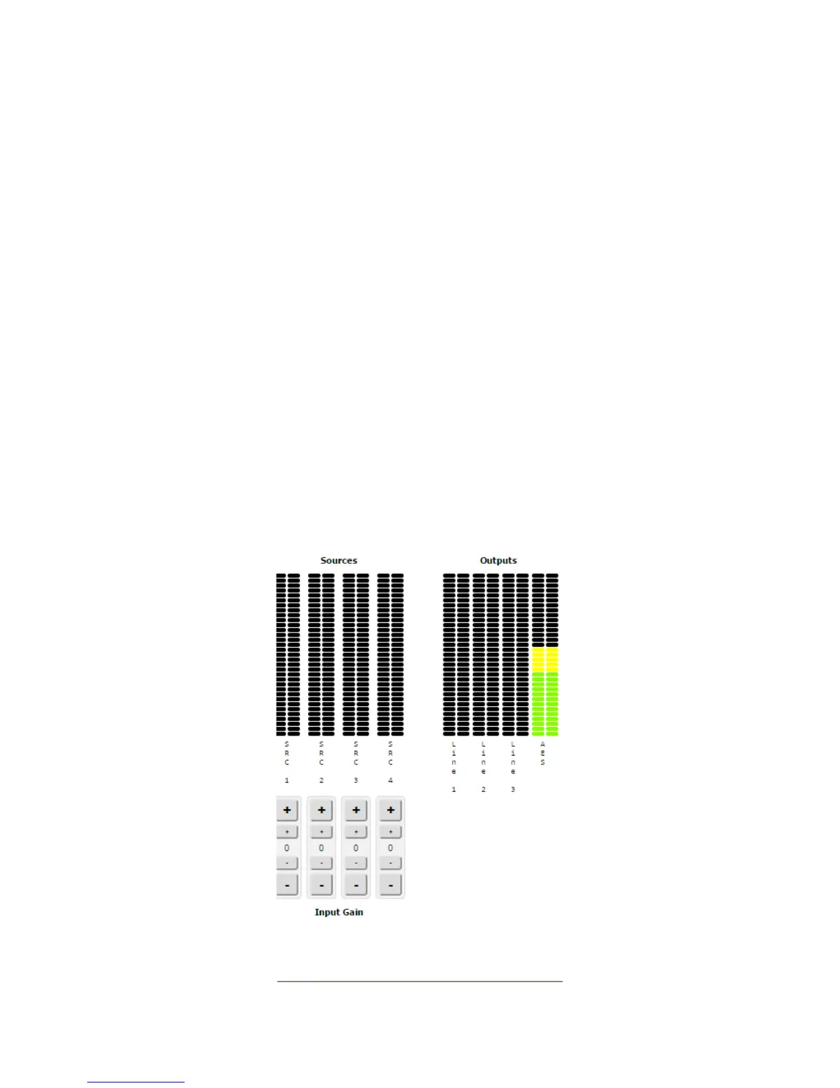 The meter page uses a Java script to provide real time meter representation of the audio at the inputs and outputs.