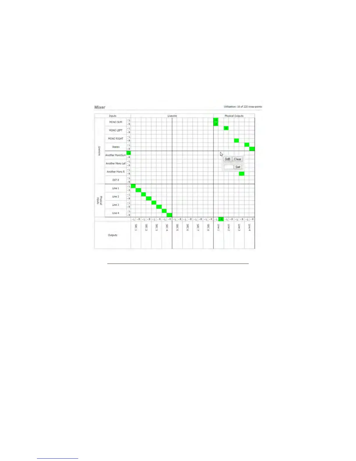 viewer can left click a cross point and a pop-up appears for setting the cross point at 0dB (unity gain), setting with a