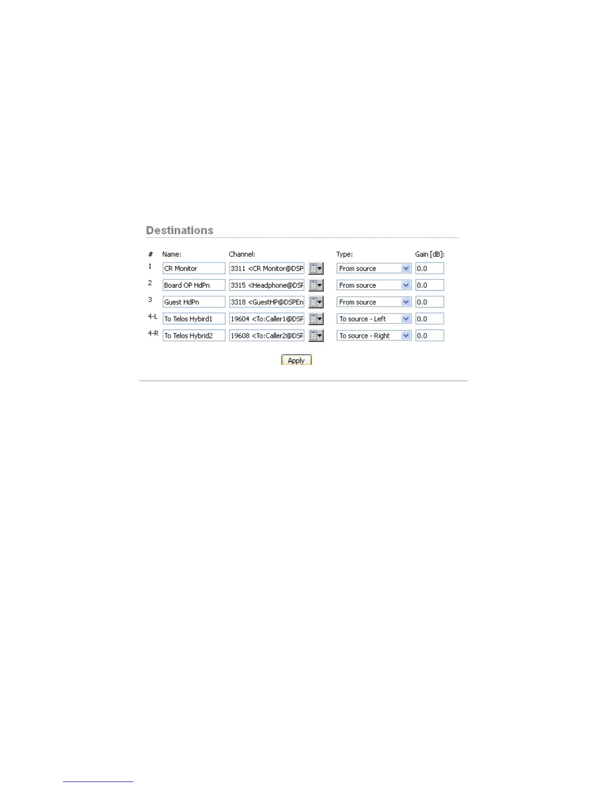 automatically generated by Axia consoles for talkback, mix-minus, etc. The Gain column provides adjustment for