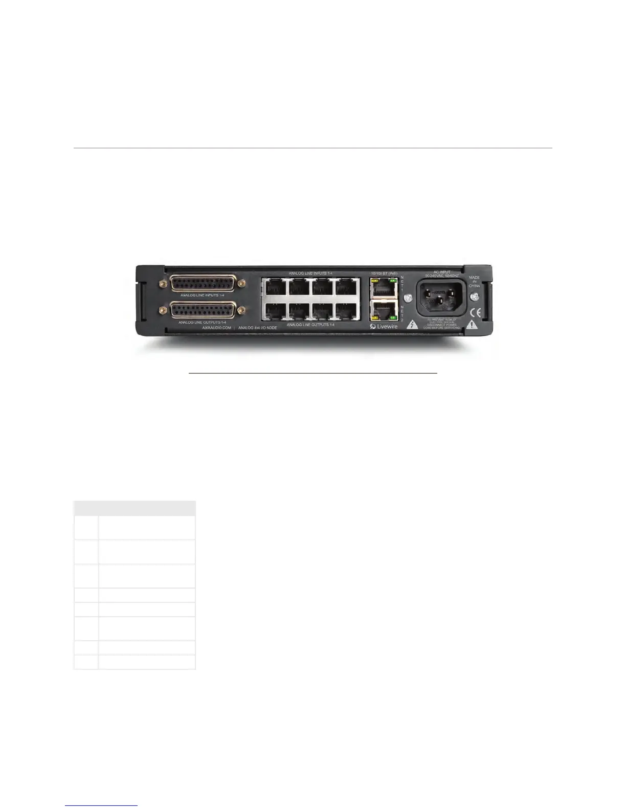 The top 4 RJ-45 style ports are line level analog inputs. The bottom 4 RJ-45 style ports are line level analog outputs.