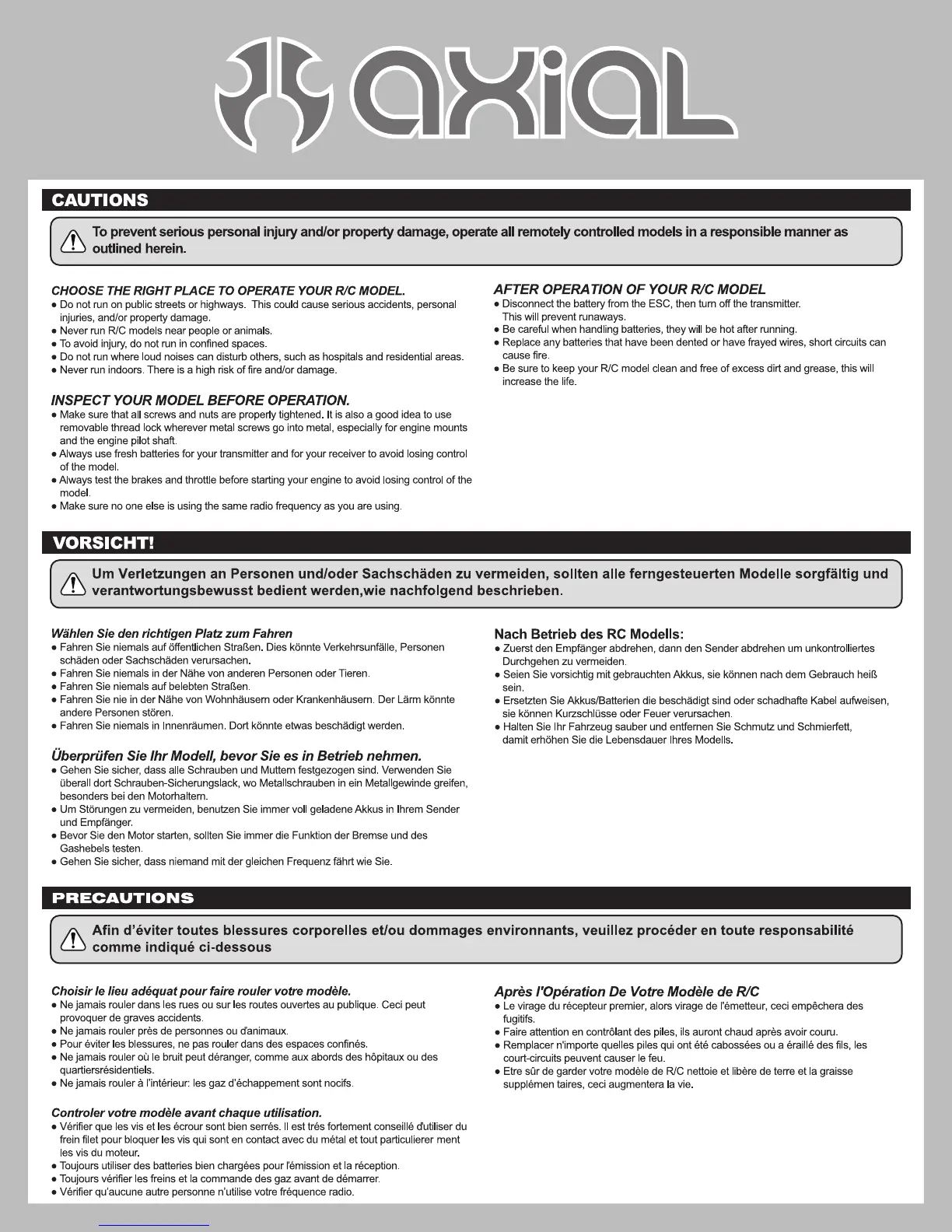 Axial RR10 Bomber - CAUTIONS; Safe Operation Practices; Pre-Operation Checks; Post-Operation Procedures