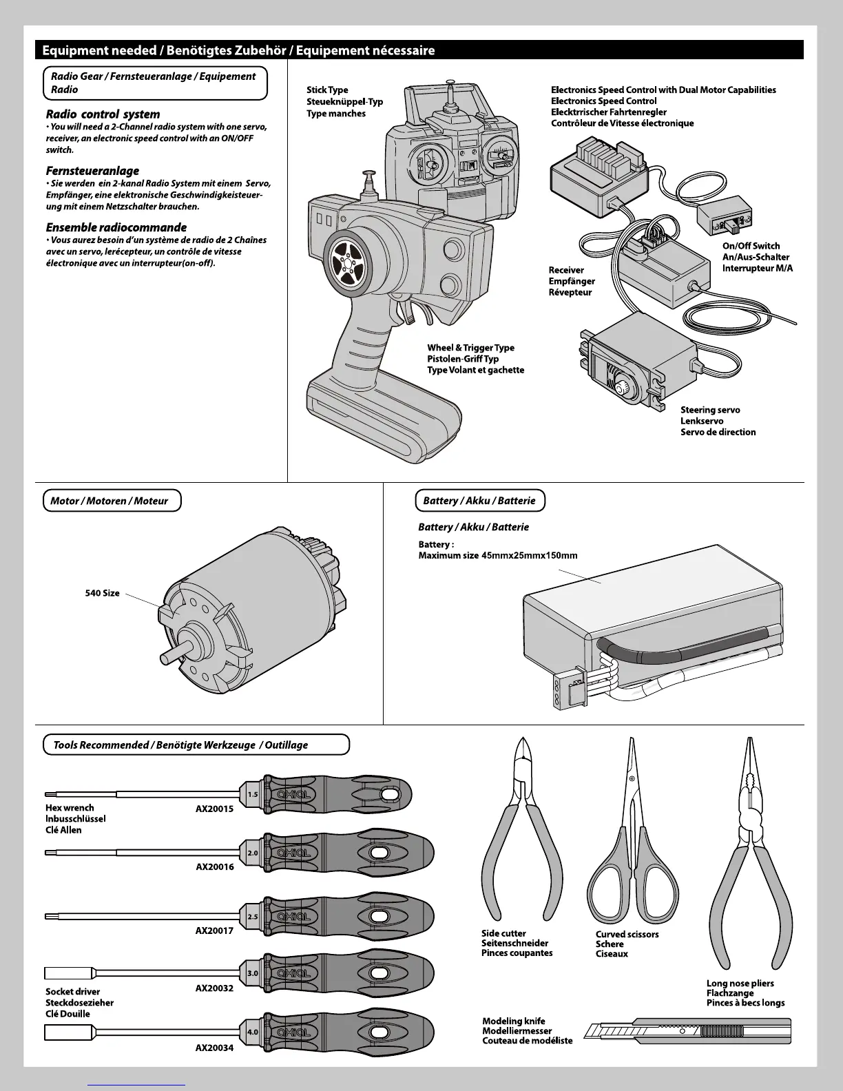 Axial Wraith Spawn - Required Equipment and Tools; Radio Gear and Components; Motor and Battery Requirements; Recommended Tools