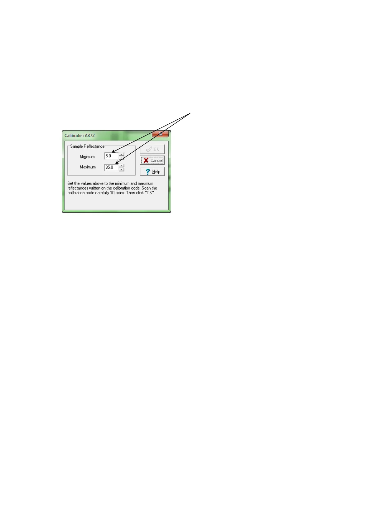 With the Calibration window open scan the calibration barcode 10