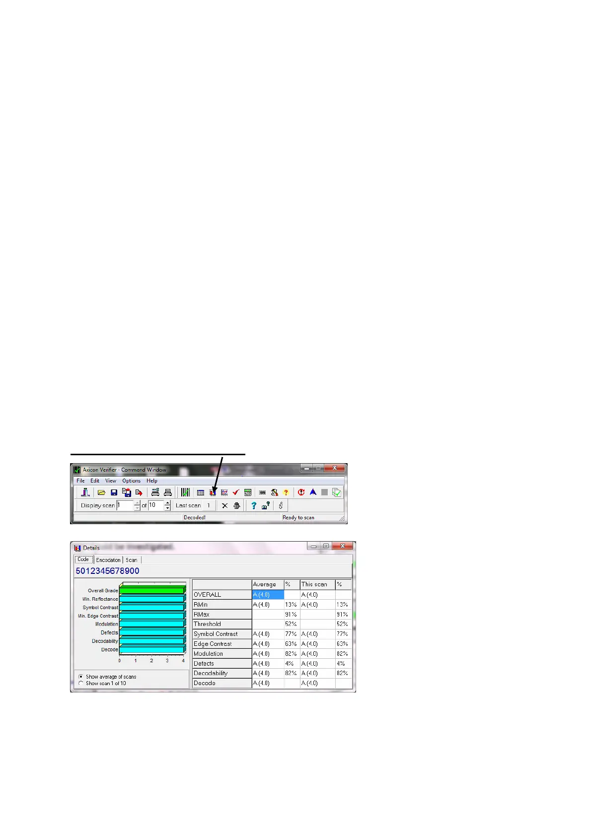 This Summary Screen shows the overall print quality of the barcode as