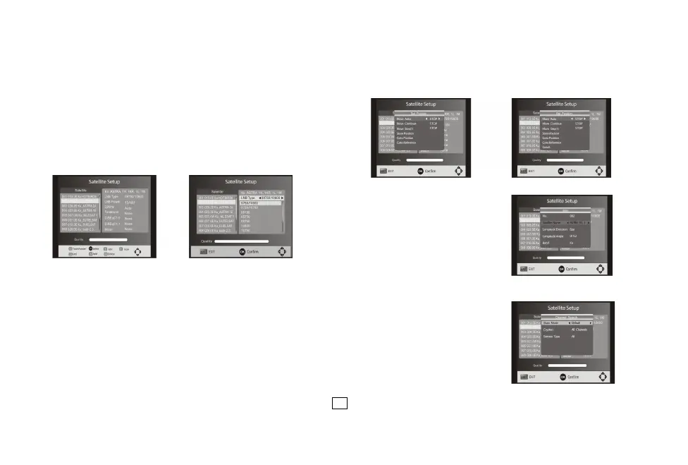 Type LNB: Appuyer sur Gauche/Droite/OK pour montrer la liste de type LNB qui montre la