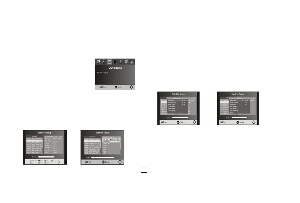 Elenco satelliti: Premere Su / Giù per selezionare un satellite, le cui impostazioni verranno