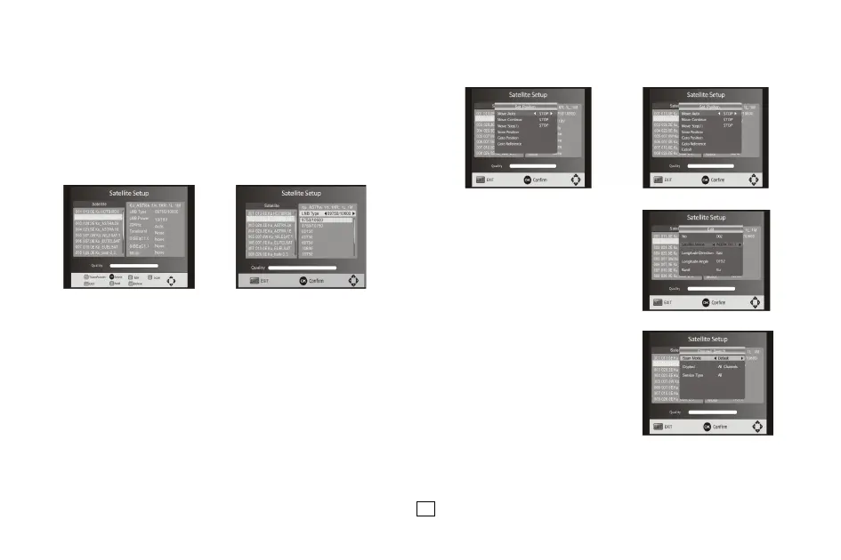 Satellites' list: Press Up/Down to select a satellite, whose settings will be shown at right