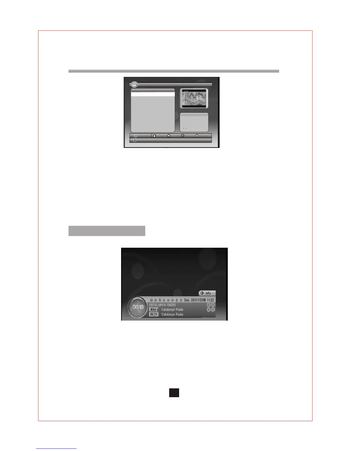 favorita, hora actual, nombre de programa, evento actual y siguiente, bloqueo,