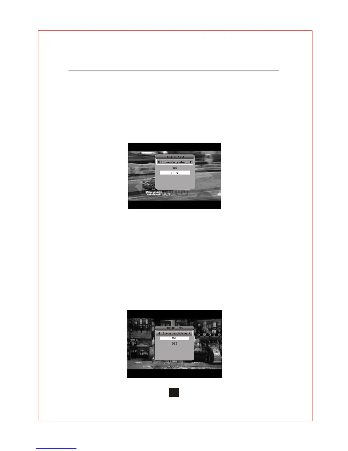 Presione el botón <Subtitle> para mostrar la página de configuración de