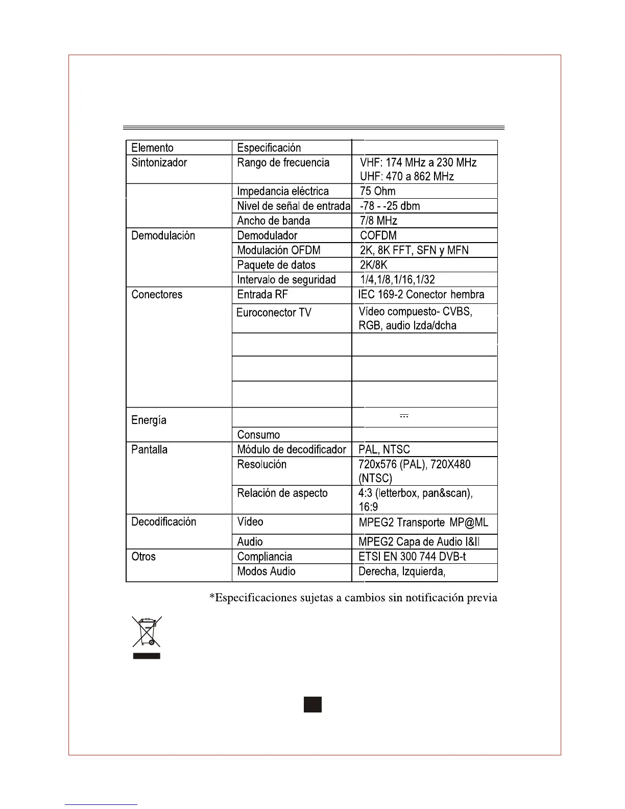 Especificaciones