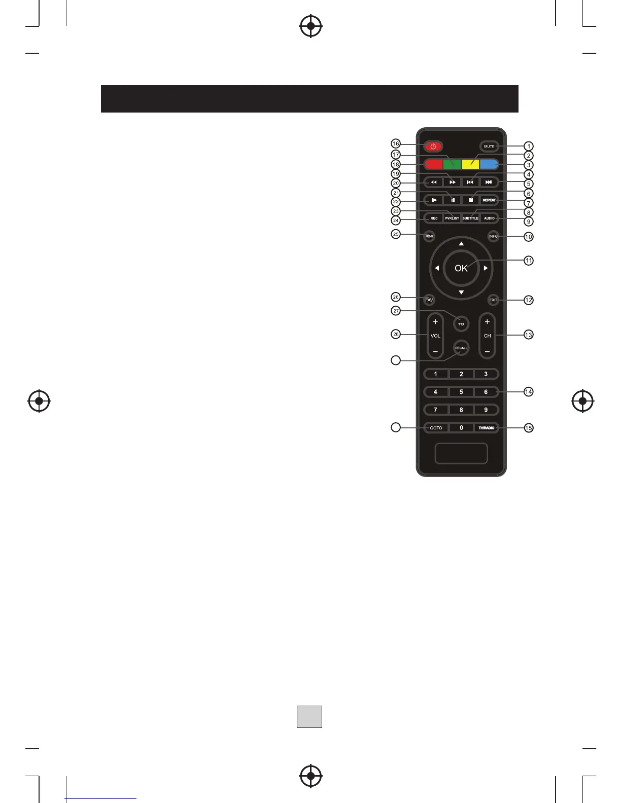 24. REC: Utilisé pour enregistrer un programme.
