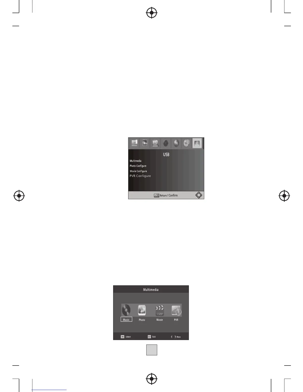(A) Multimédia : Lorsqu'un périphérique USB est connecté, vous pouvez
