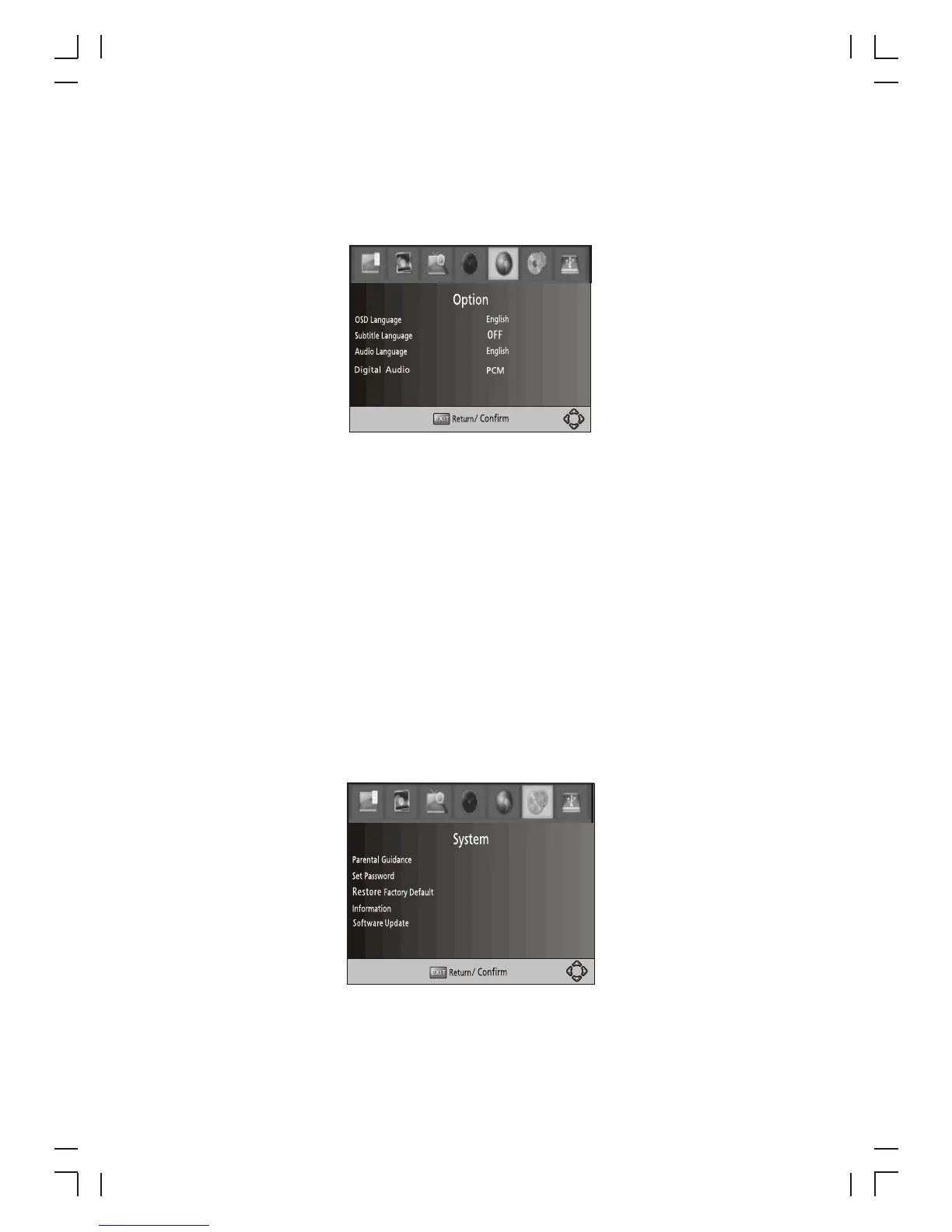 adjust the OSD Language, Subtitle Language and Audio Language.