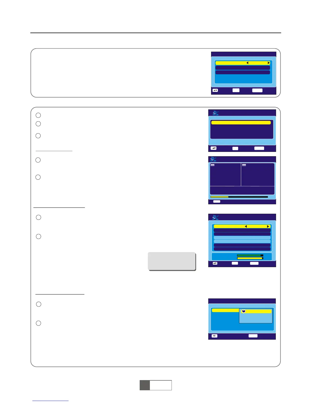 Highlight "Search", press the "OK" button to start channel search.