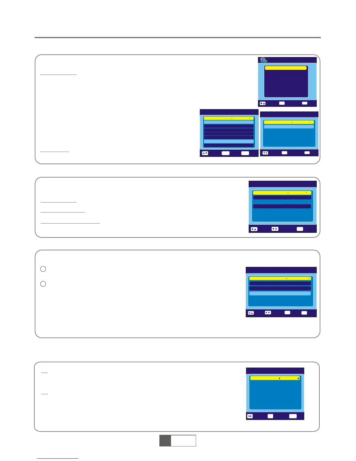 This menu allows you to set Subtitle Display, OSD Transparency and load default OSD