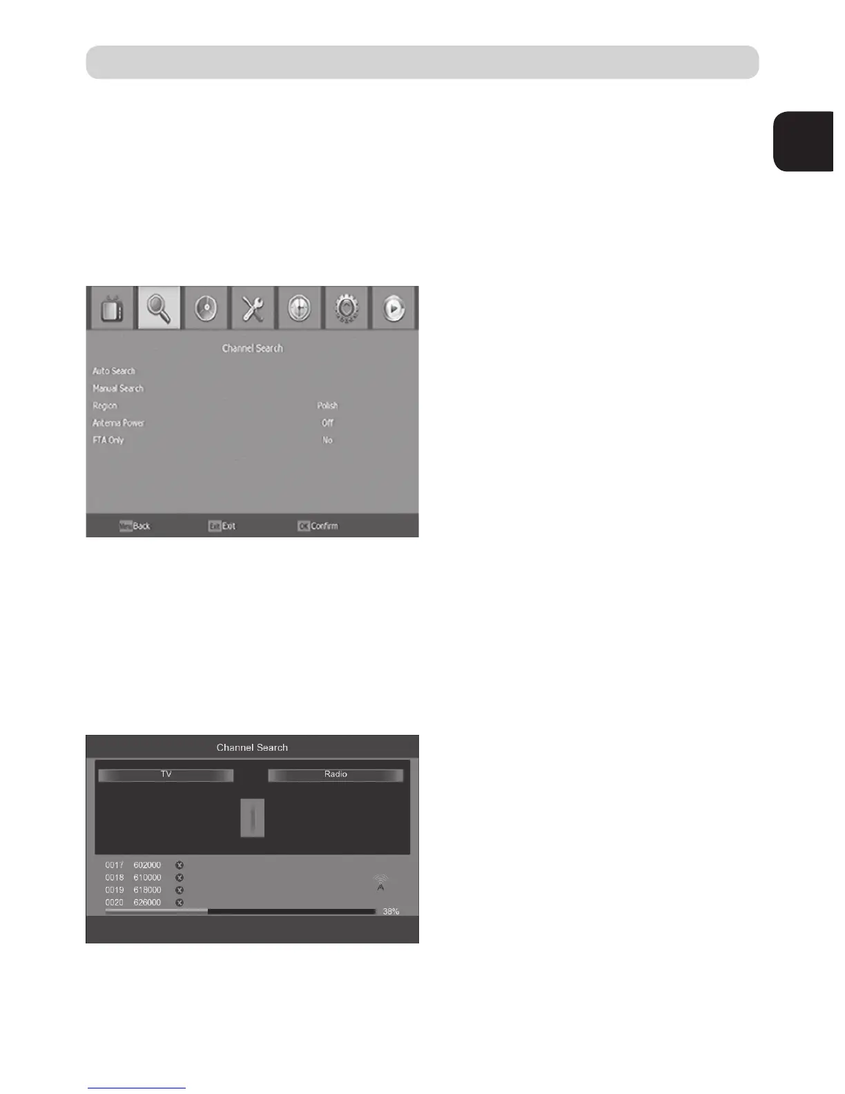 effacés. Sélectionner “Recherche Auto” et appuyer sur OK ou DROITE pour démarrer la re-