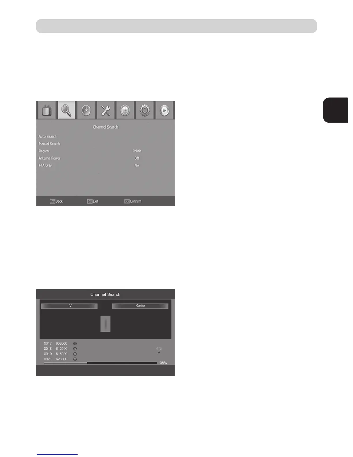 Select “Auto Search” and press OK or RIGHT to start channel search.