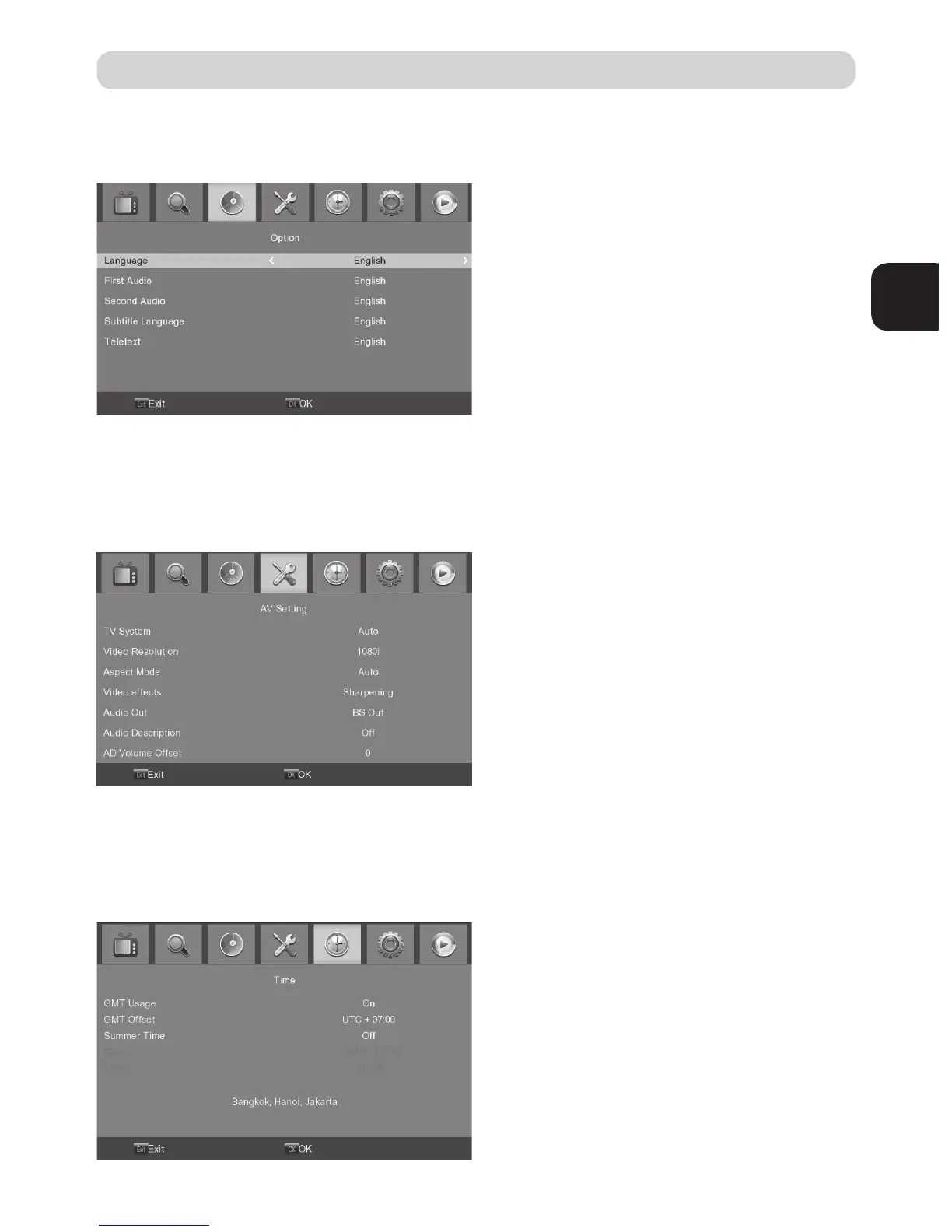 and press RIGHT/LEFT to adjust the settings. Press EXIT to exit the menu.